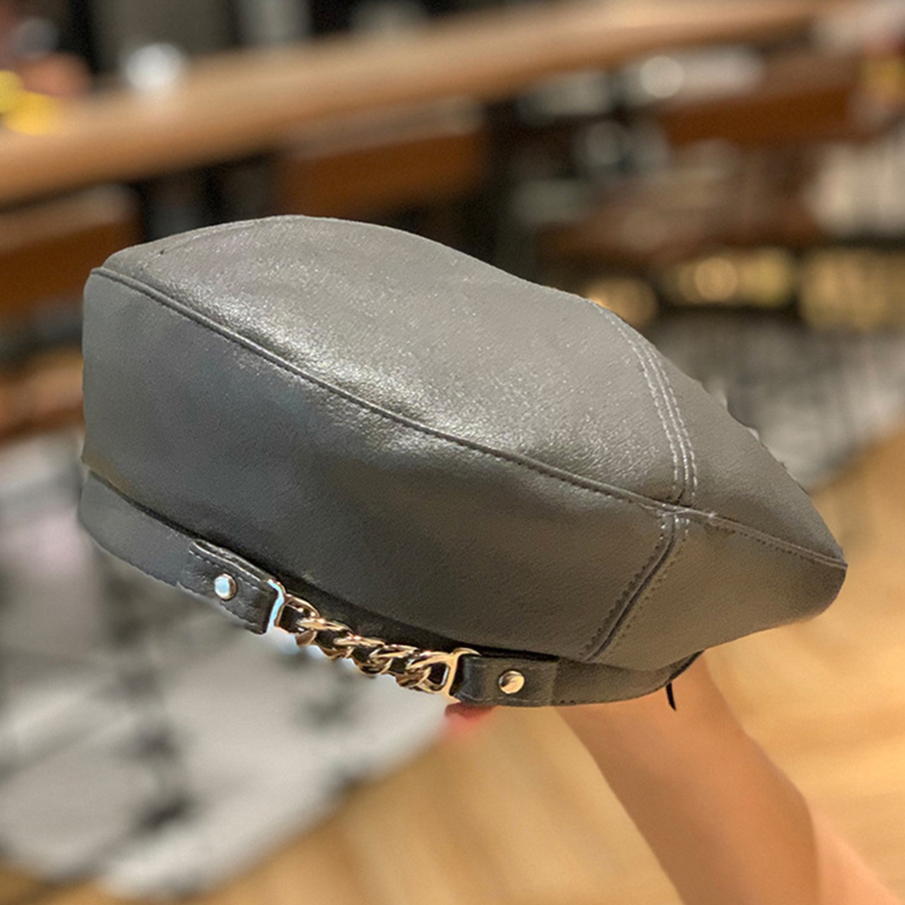 程よいマットな質感で、柔らかさのあるフェイクレザーベレー帽