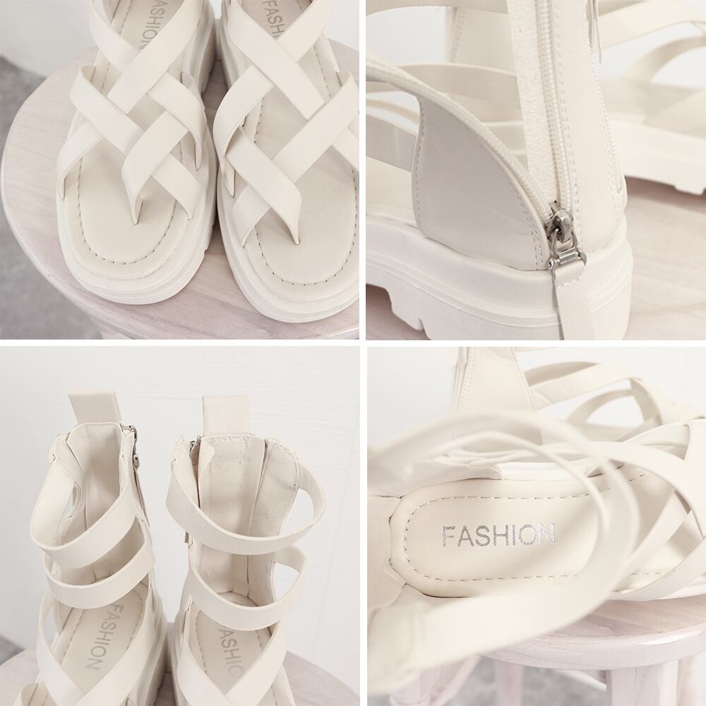 韓国ストラップサンダル 美脚おしゃれ カジュアルシューズ 軽量フラットサンダル 履きやすい バックジッパー サマーブーツ