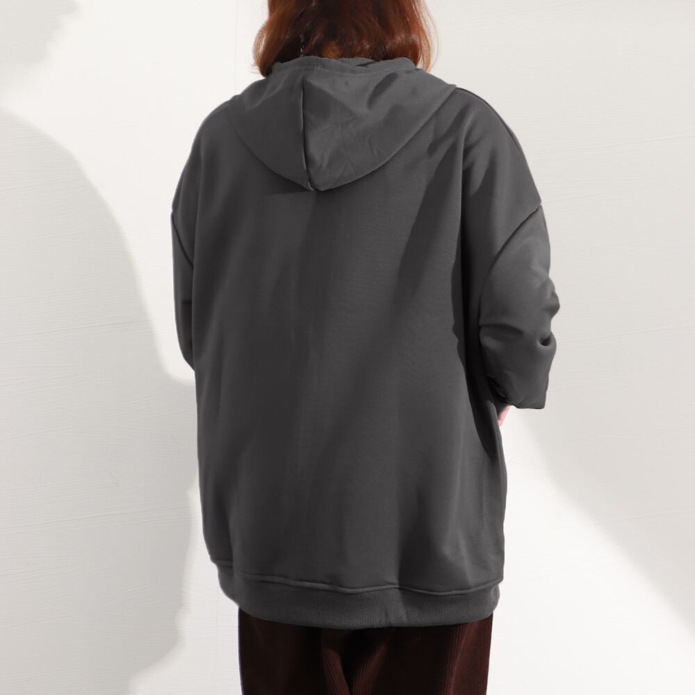 フロント部分は着脱がしやすいZIPデザイン、お洒落に着こなすパーカー