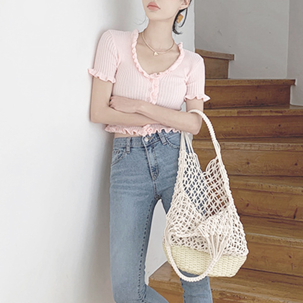 レディース 大人可愛い ストローバッグ リゾート レジャー ペーパーバッグ カジュアルレトロ風 フィッシュネットバッグ海