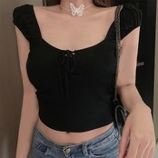 伸縮性のある素材なので体にフィットし美しいボディーラインを引き立てくれるアイテム、ハイウエストパンツなどと合わせるのがオススメです