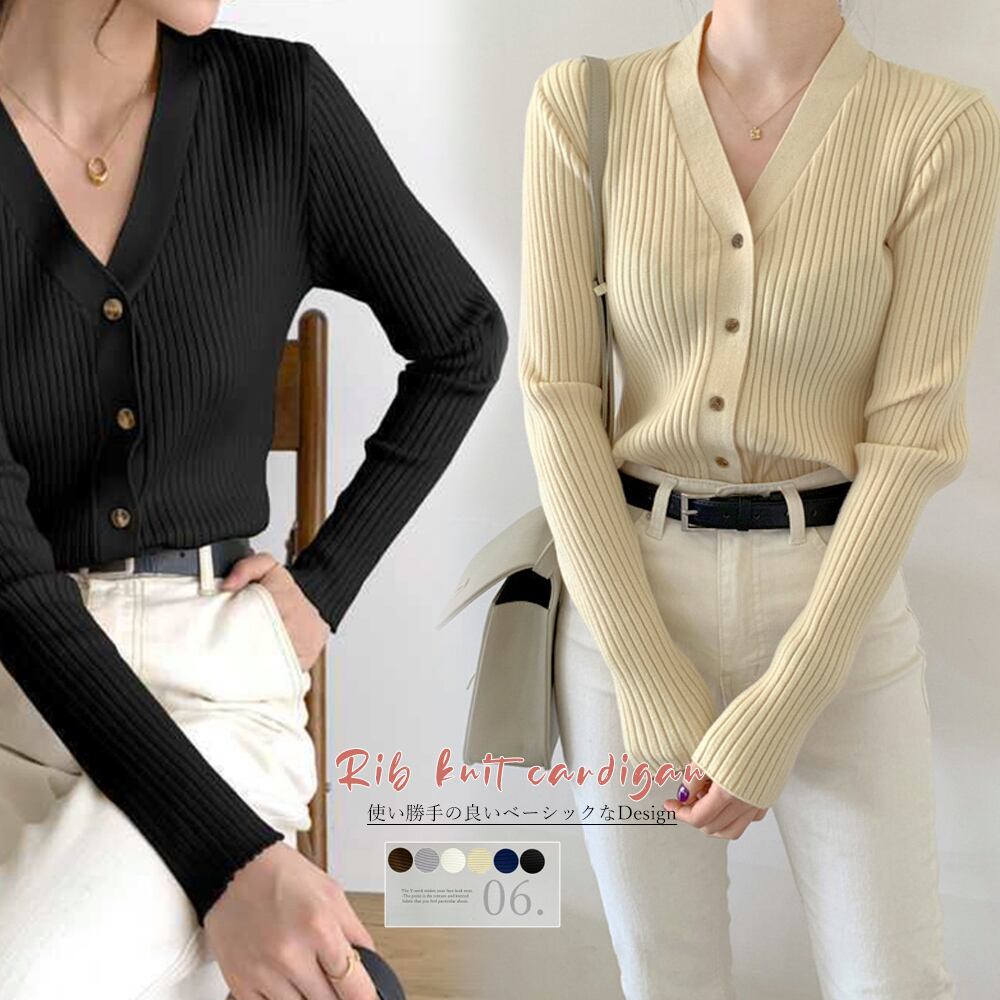 無地 ショートカーデ vネック ニットトップス きれいめ 長袖 ニットソー 韓国ファッション ニットセーター羽織もの