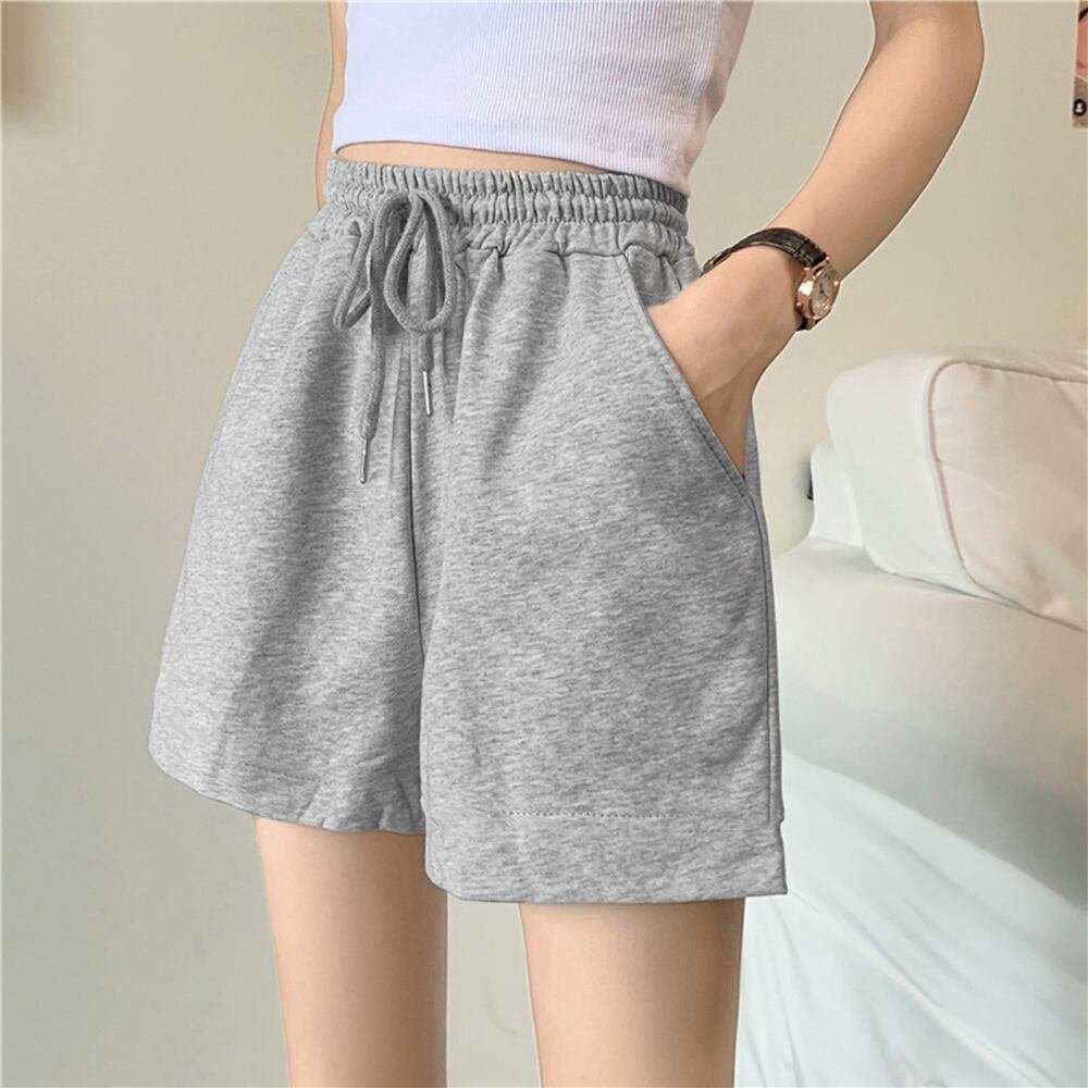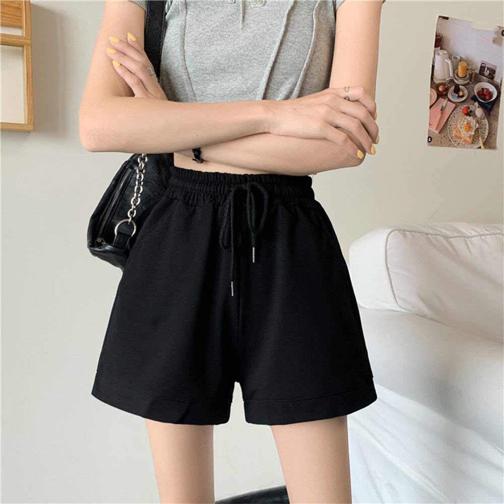 ウエストゴム 韓国 ホットパンツ ハイウエスト ミニ丈 ボトムス ゆったり 短パン カジュアル スポーツパンツ短パン無地