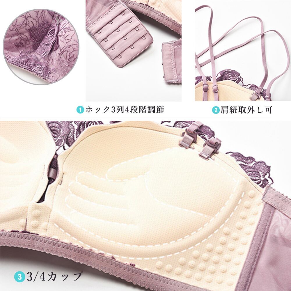 ブラジャー 3/4カップ 花柄刺しゅう レースランジェリーセット 可愛い 盛りブラ 韓国風 美胸ワイヤレスブラ 痛くない
