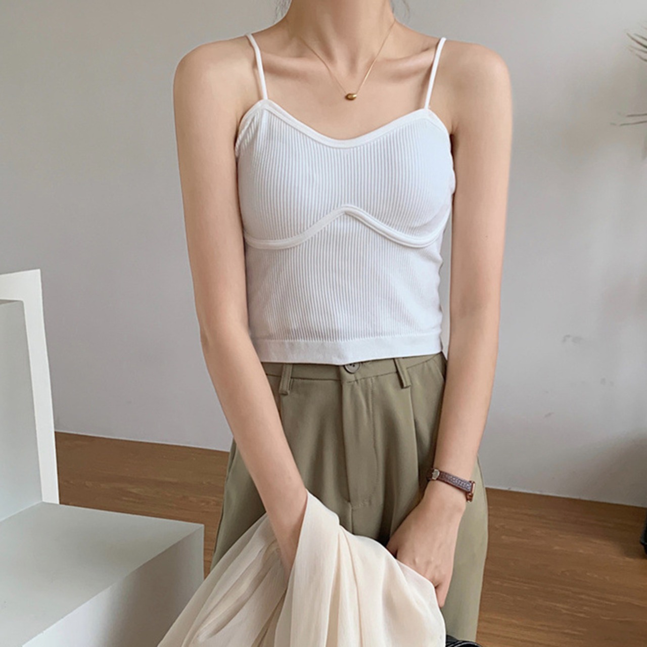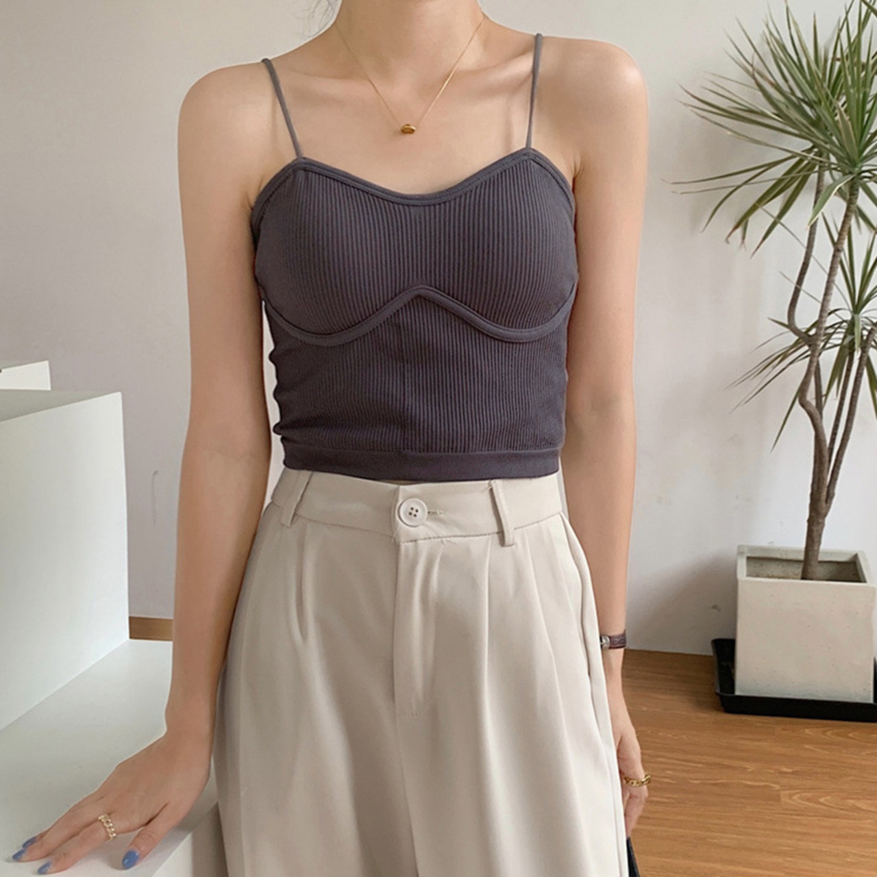 韓国風リブキャミ 春夏 キャミヨガ シンプルベアトップ