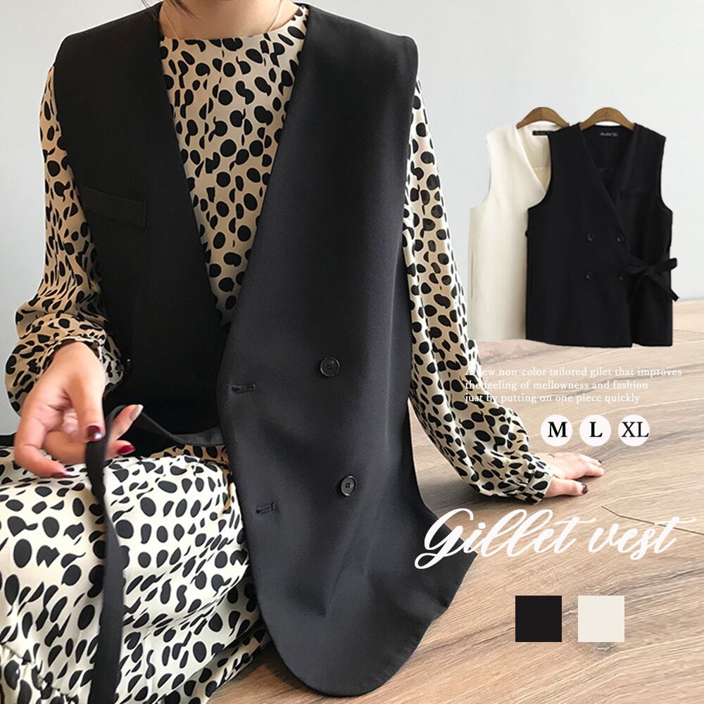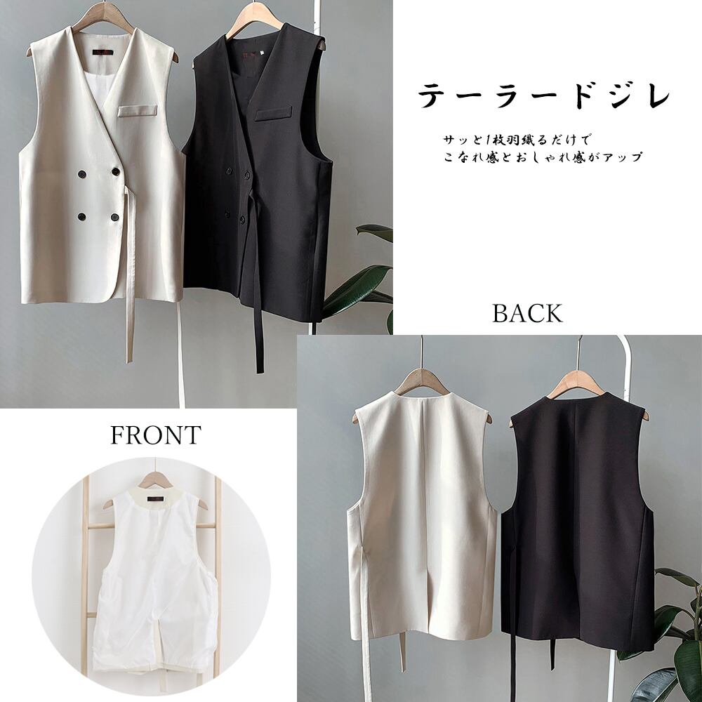 ジレ ベスト 前開き ノースリーブ 春秋