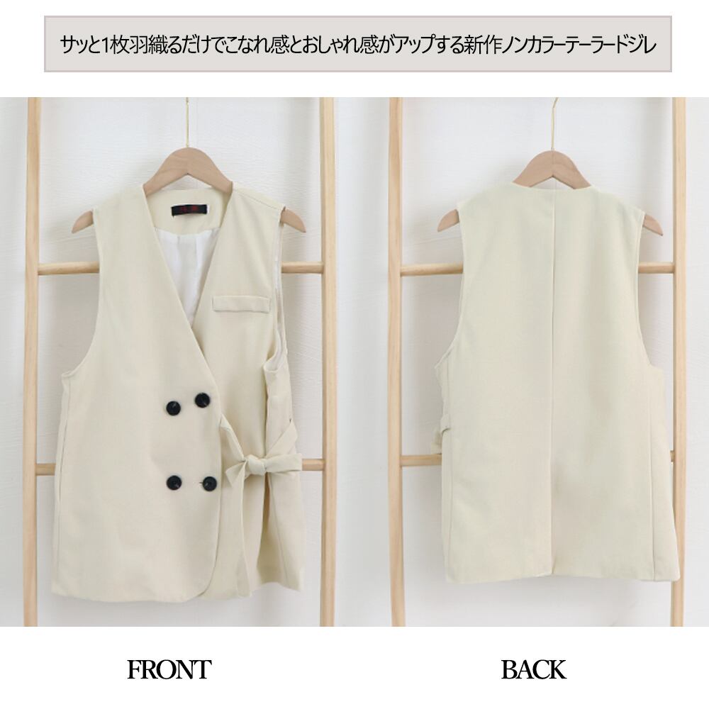 サッと1枚羽織るだけでこなれ感とおしゃれ感がアップする新作ノンカラーテーラードジレ