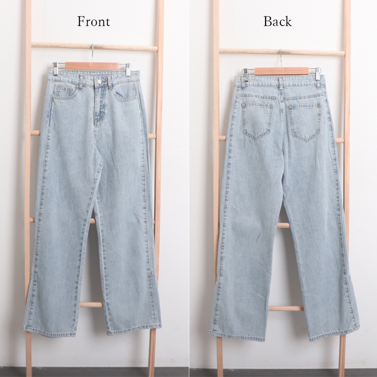 シンプルなハイウエスト仕様のストレートデニムロングパンツ