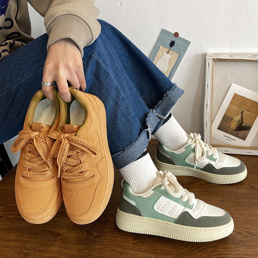 おしゃれ ローカットスニーカー カジュアルシューズ 履きやすい レースアップ靴 春夏秋冬 配色スニーカー 韓国厚底ソール