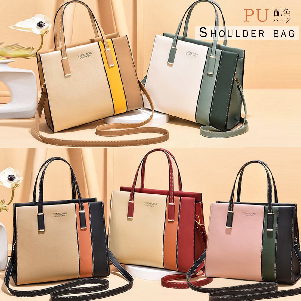 レディース 配色ハンドバッグ PUレザーおしゃれ 大容量 肩掛けバッグ マチ広ミニトートバッグ 鞄 大人かわいい