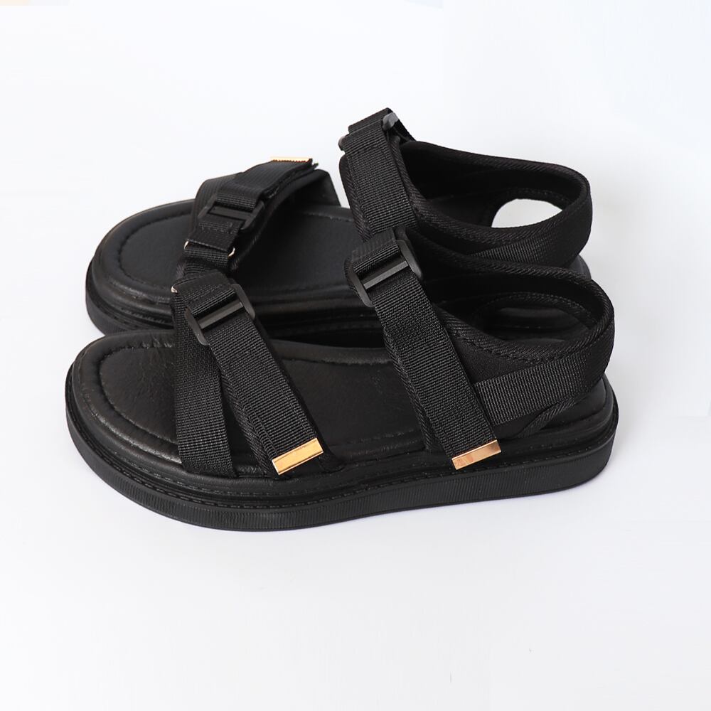 サマーサンダル マジックテープ フラット ボリューム コンフォート靴 履きやすい 韓国風 黒 アイボリー