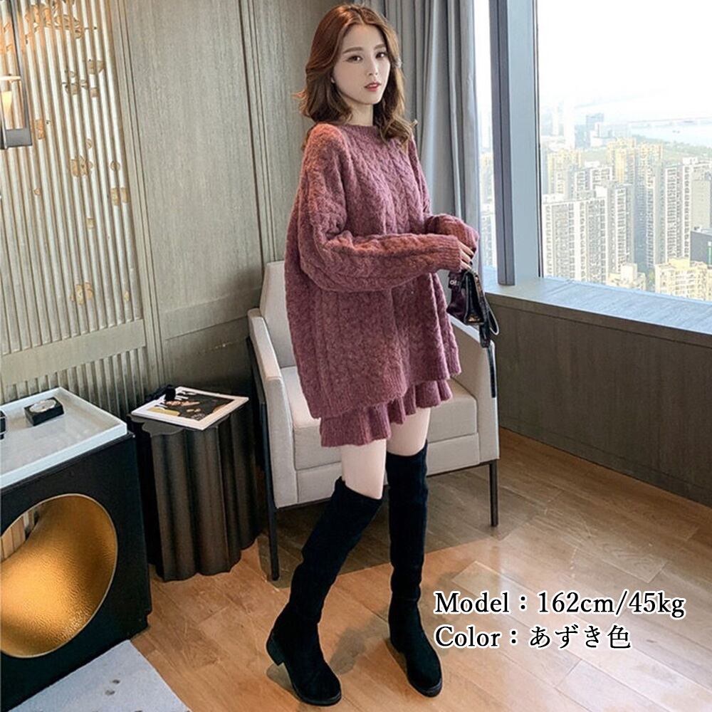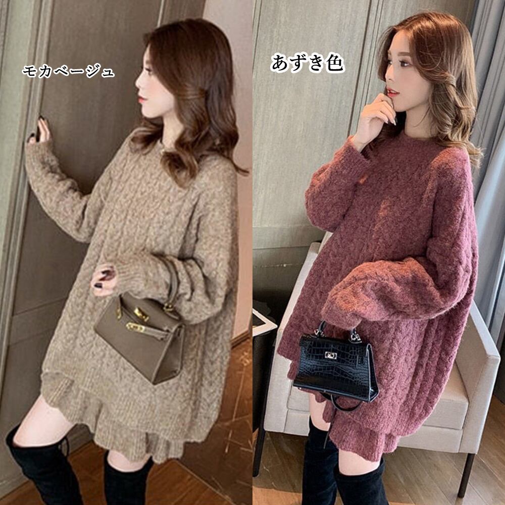 ケーブル編み ニット トップス 長袖 きれいめ 裾フリル ニットスカート マーメイド ゆったり 体型カバー 秋冬 新作