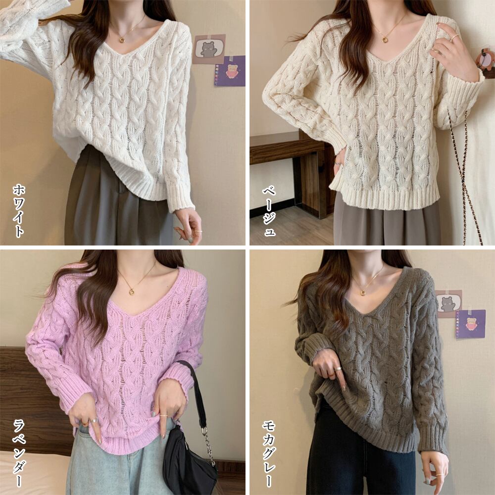 ざっくり編みが抜け感をプラスするケーブルニットトップス
