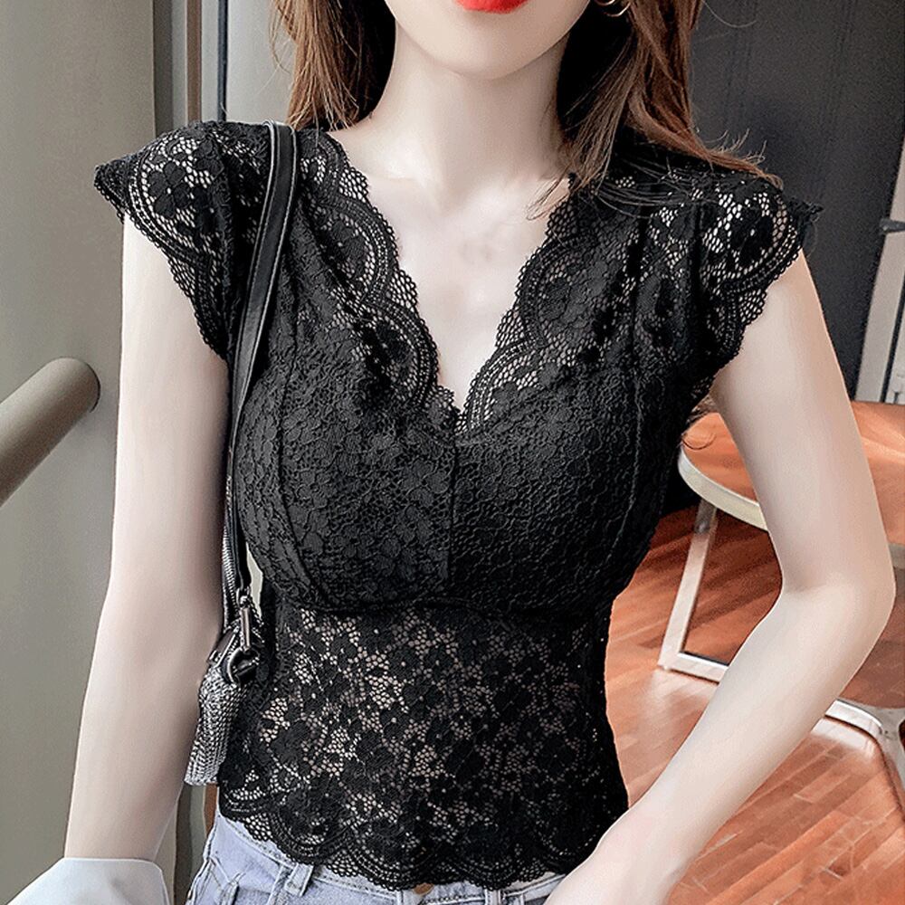 レーストップス 半袖 レディース シースルー ブラウス スカラップ 春夏 花柄 トップス レース トップス きれいめ トップス