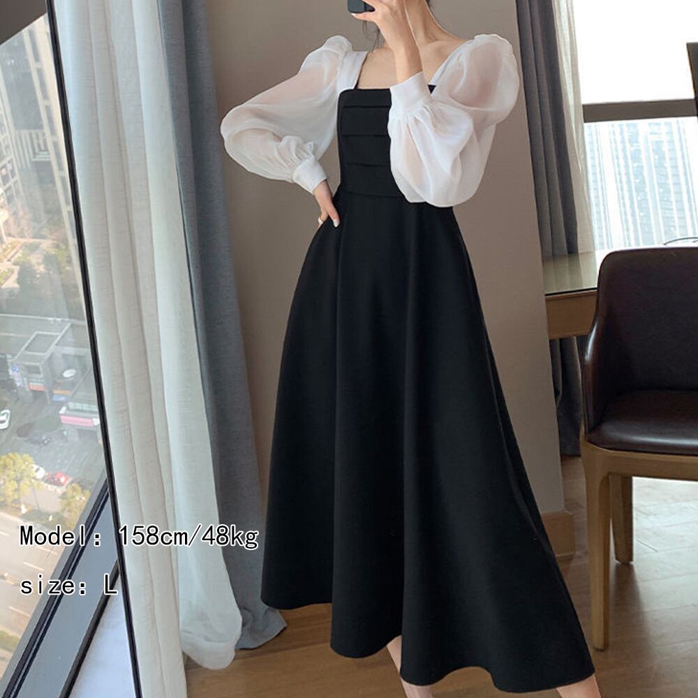 レディース 春秋夏 新作 ロングワンピース 切り替え おしゃれ 着やせ ドッキングワンピース レトロ風 結婚式 ドレス