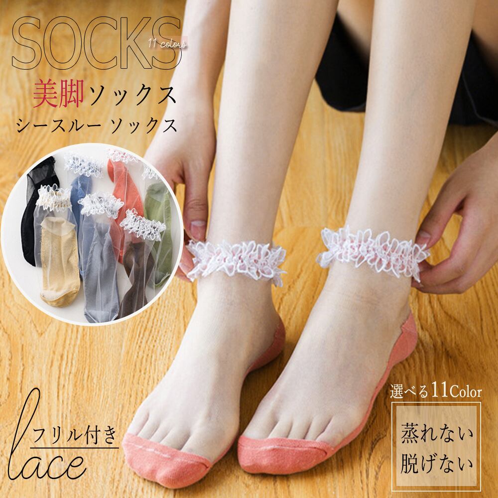 アンクレット 靴下 フリル スニーカーソックス アンクルソックス シースルー