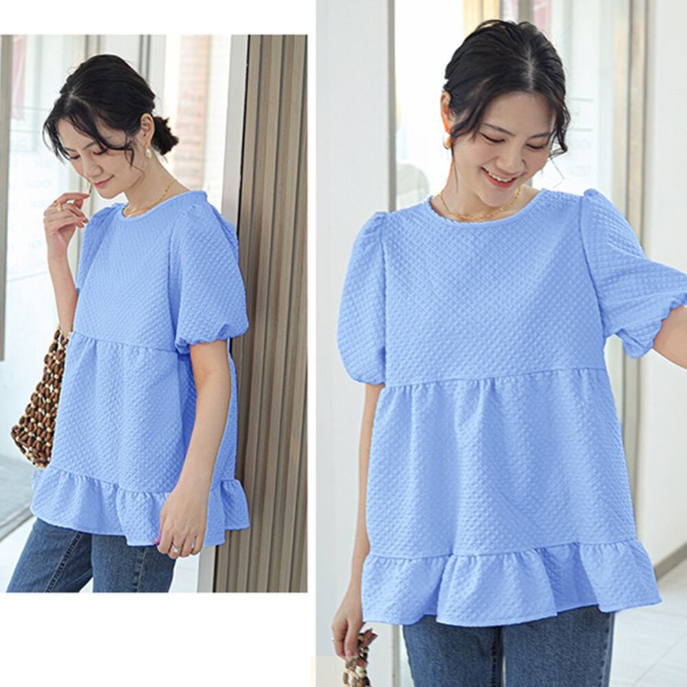 ふんわリとしたボリューム感で品のある女性らしい半袖ティアードトップス