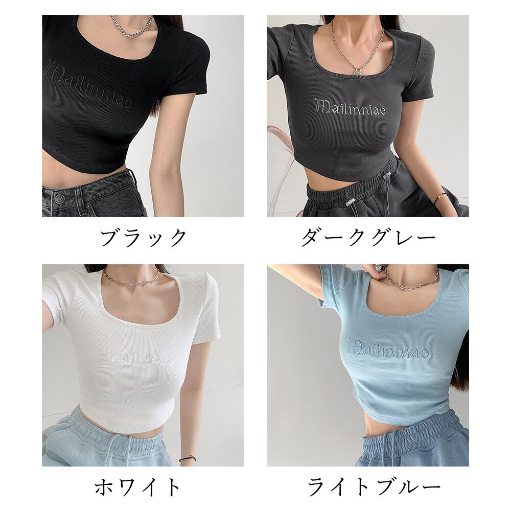 ショートトップス Uネック Tシャツ 韓国ファッション