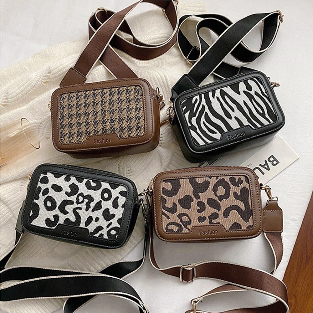 ヒョウ柄ポシェット ミニバッグ 千鳥柄 ゼブラ柄サブバッグ