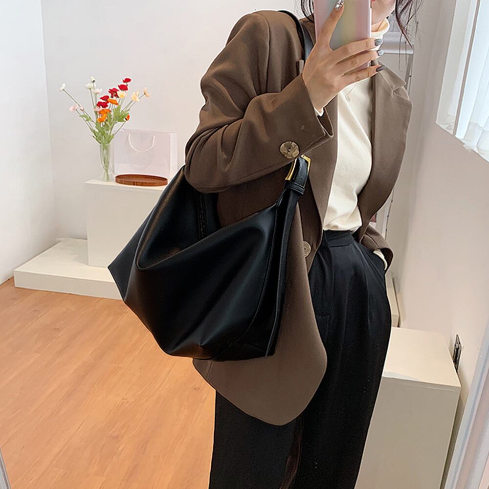PUレザー大容量 ショルダーバッグ シンプル 軽い 斜め掛けバッグ ソフトラウンド 合皮カバン オフィスカジュアル 3色