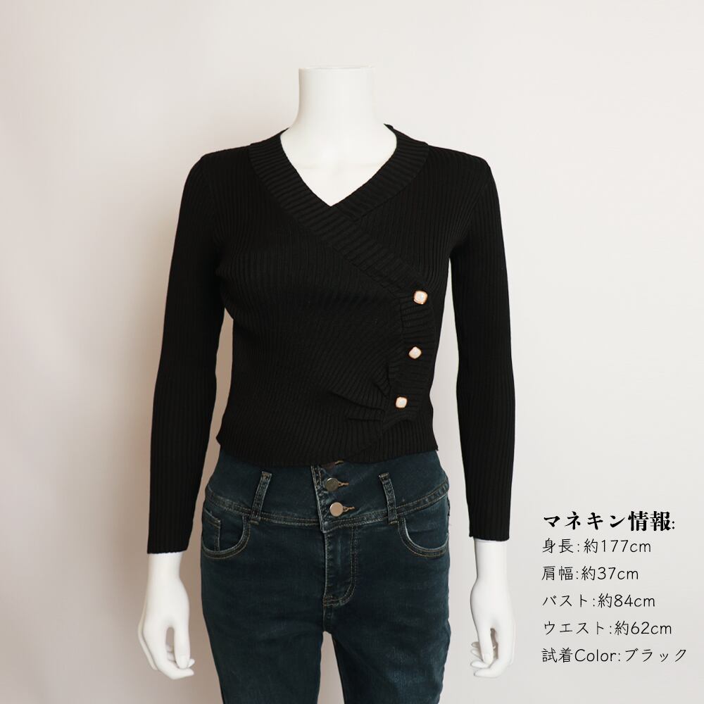セーター 韓国 リブ 飾り ボタン付き 通勤 オフィスカジュアル 無地 春秋冬 きれいめ フェミニン デコルテ見せ
