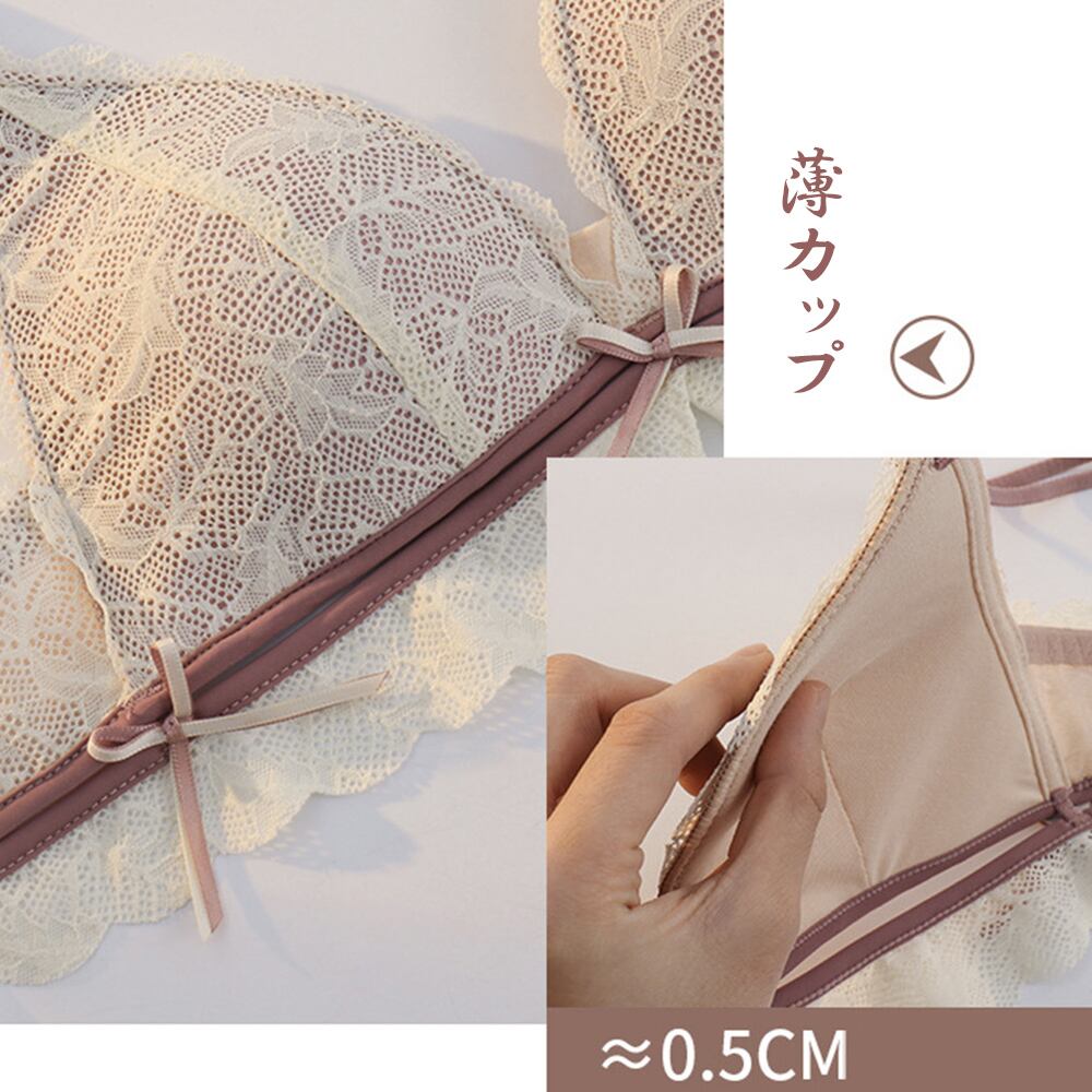 ブラジャーリボン付 下着上下セット快適 美胸小胸ナイトブラ
