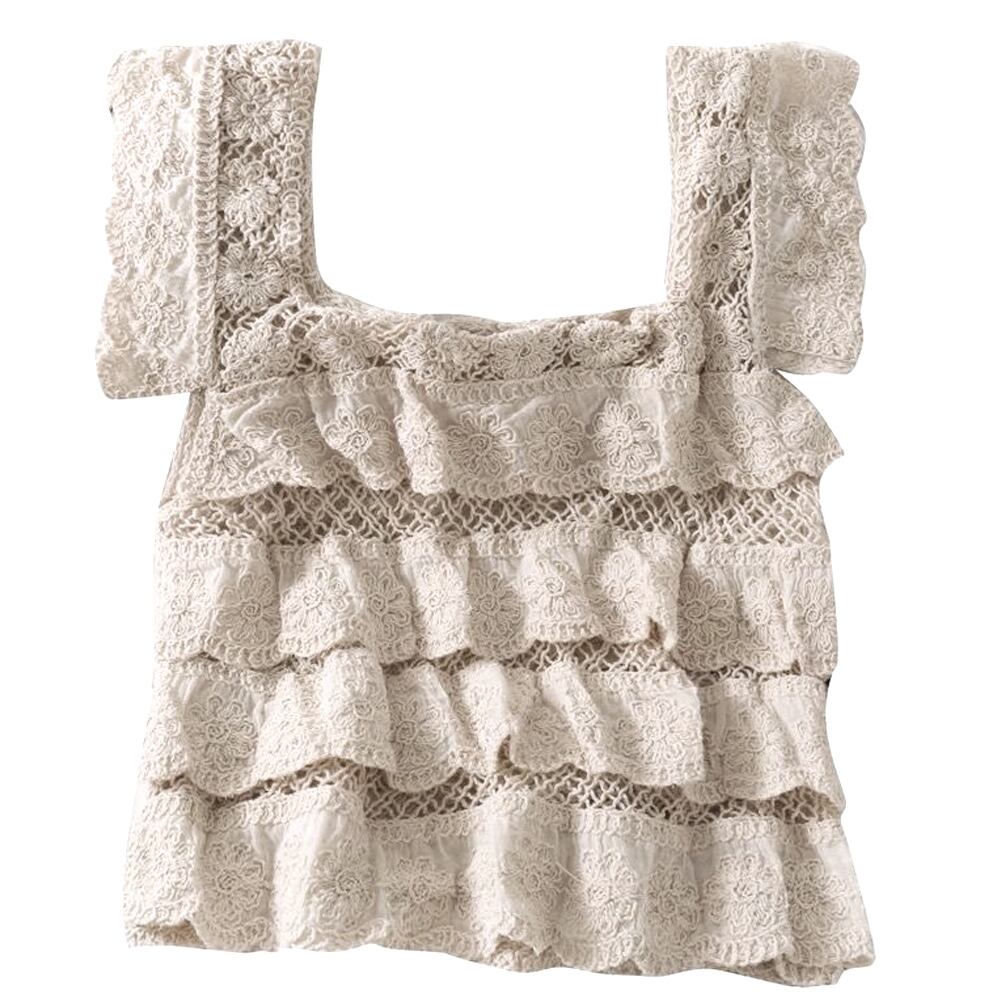 かぎ編み ベスト 肌見せ スクエアネック 重ね着 セクシー 韓国ファッション 大人可愛い フリルプルオーバー