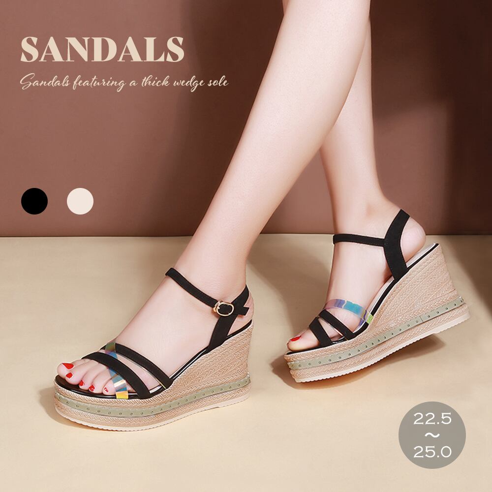 ウェッジサンダル ウェッジソール ベルト オルチャン 歩きやすい 履きやすい 美脚