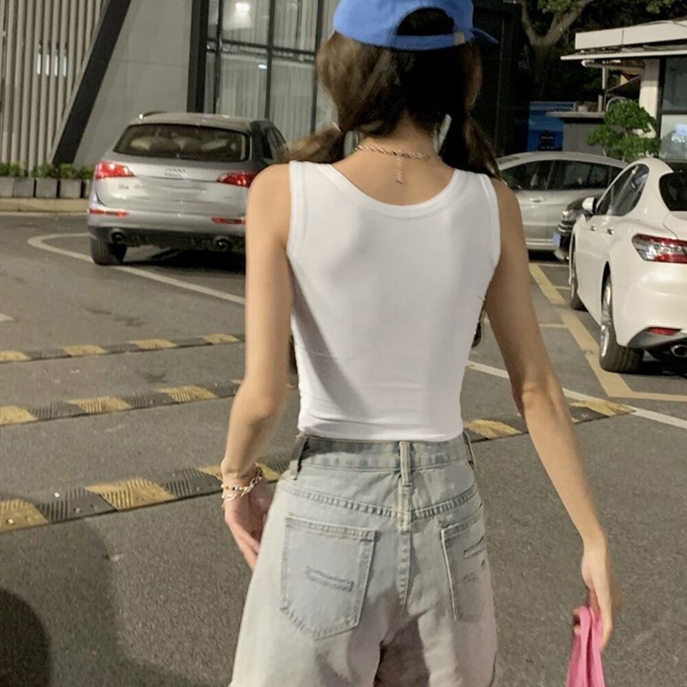 リブニットタンク クルーネック 春夏ブラトップ 楽ちん 幅広ストラップ ショート丈 盛れる インナートップス 英字ロゴ