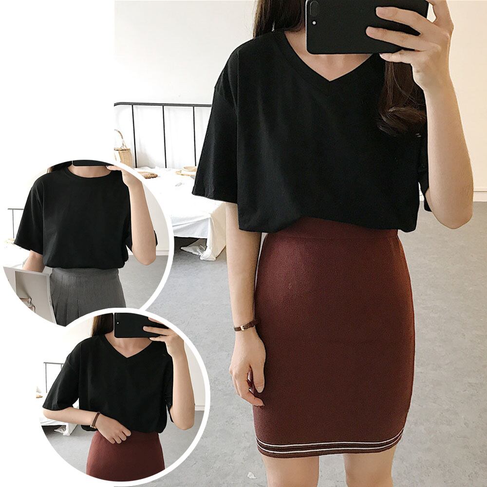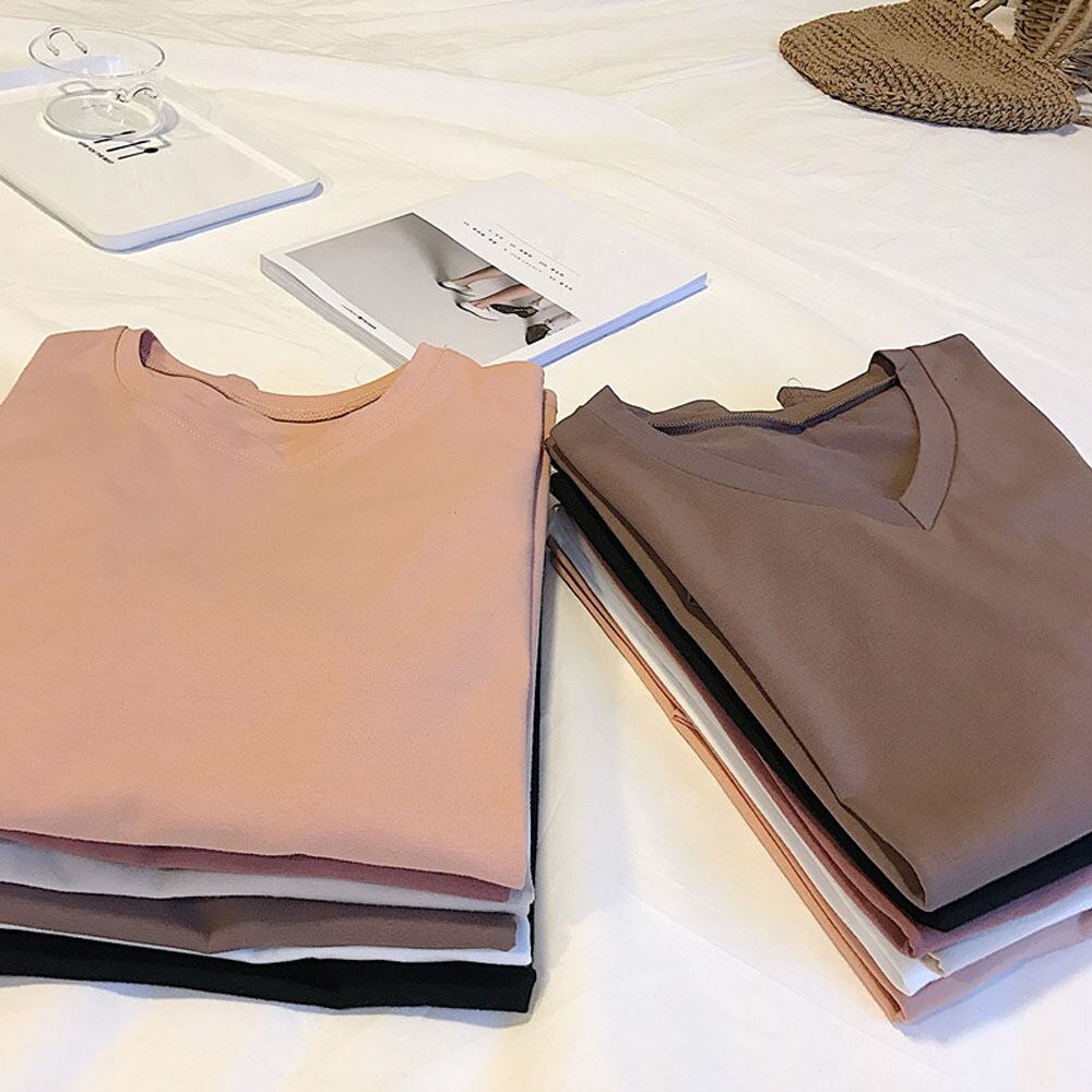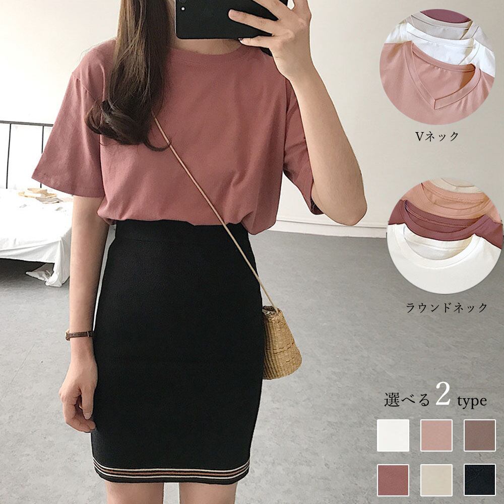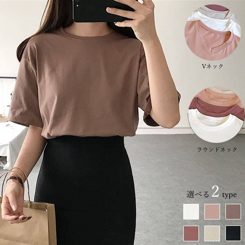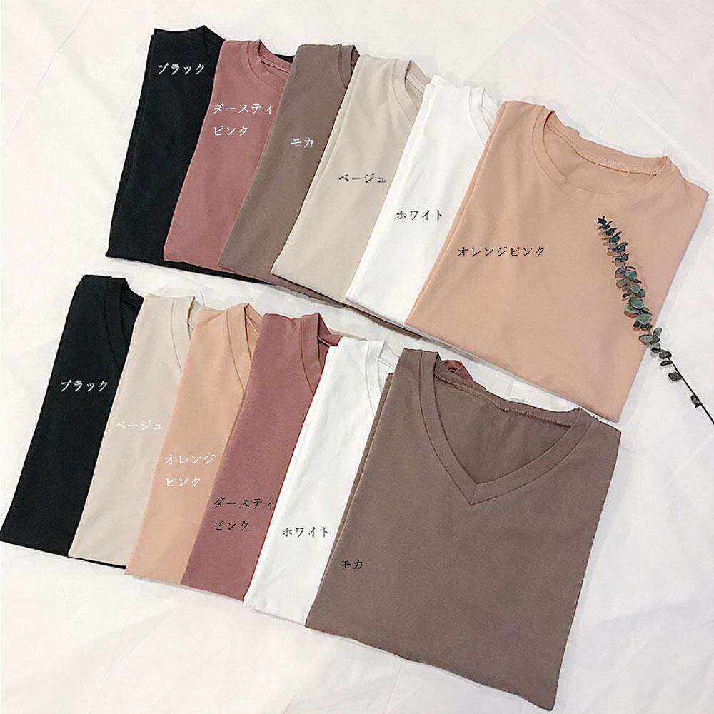 ラウンドネックとVネックの2パターンから選べるシンプルtシャツ
