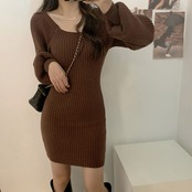スクエアネックなのでデコルテ部分をスッキリと見せてくれるショート丈ニットワンピース