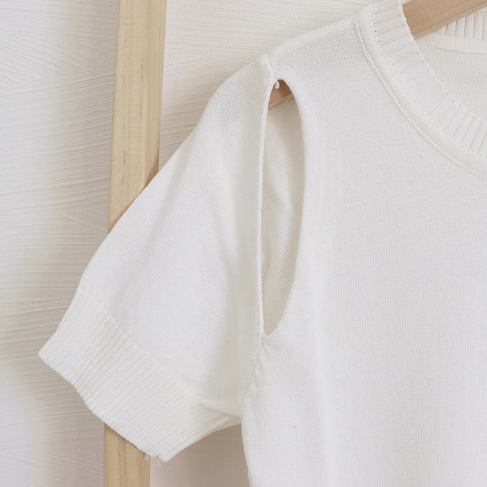 短め丈でスタイルアップ効果が抜群な肩出しショート丈ニットトップス
