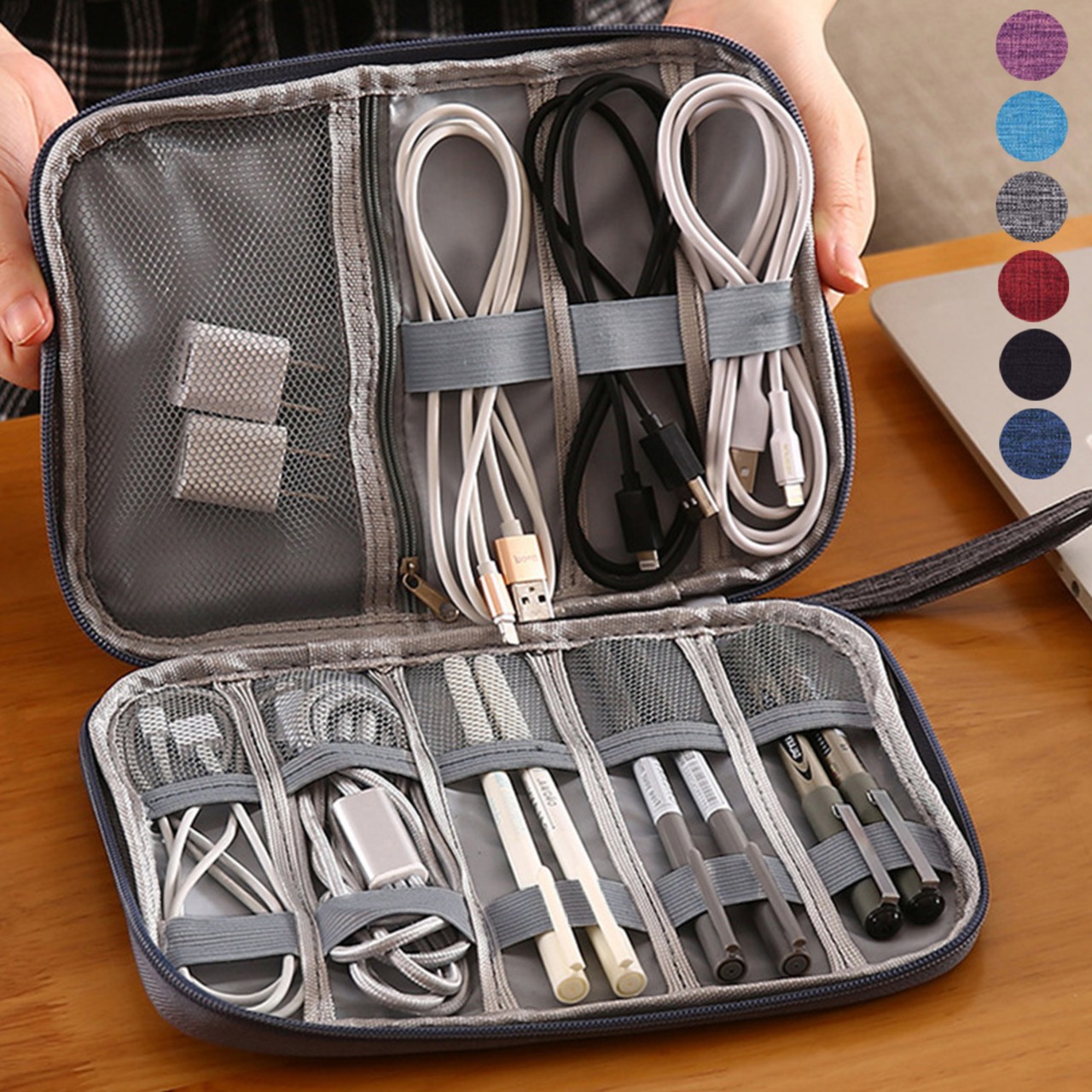 様々なデータケーブル、ヘッドフォン、電源アダプタ、SDカードやその他のPC周辺小物を1一か所に収納できますので、バックの中はごちゃごちゃにならずに探しやすい