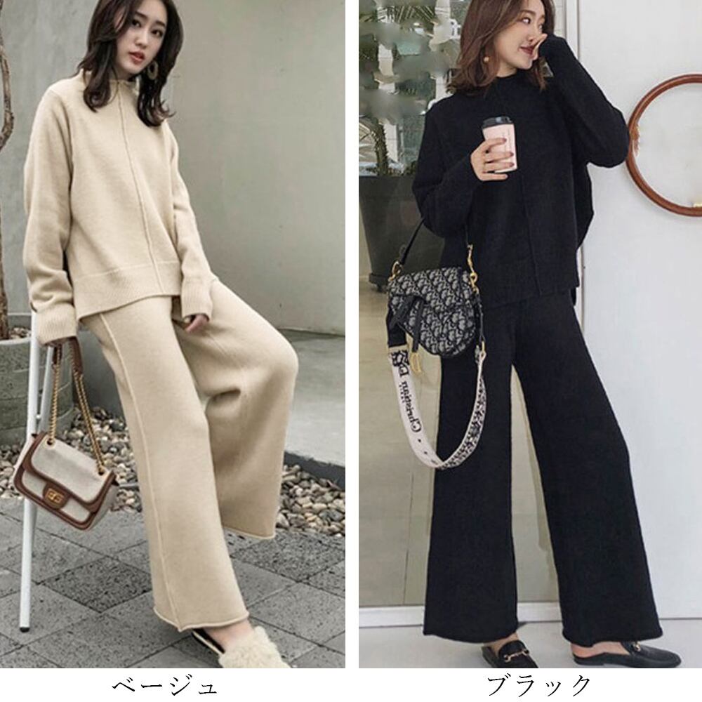 ニットセットアップ レディース ゆったり 秋冬長袖 ニットトップス 無地