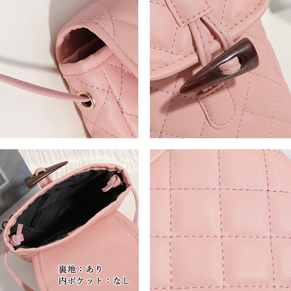 PUレザーのマットな質感が大人きれいめな印象に仕上げてくれるキルティングスマホショルダーバッグ