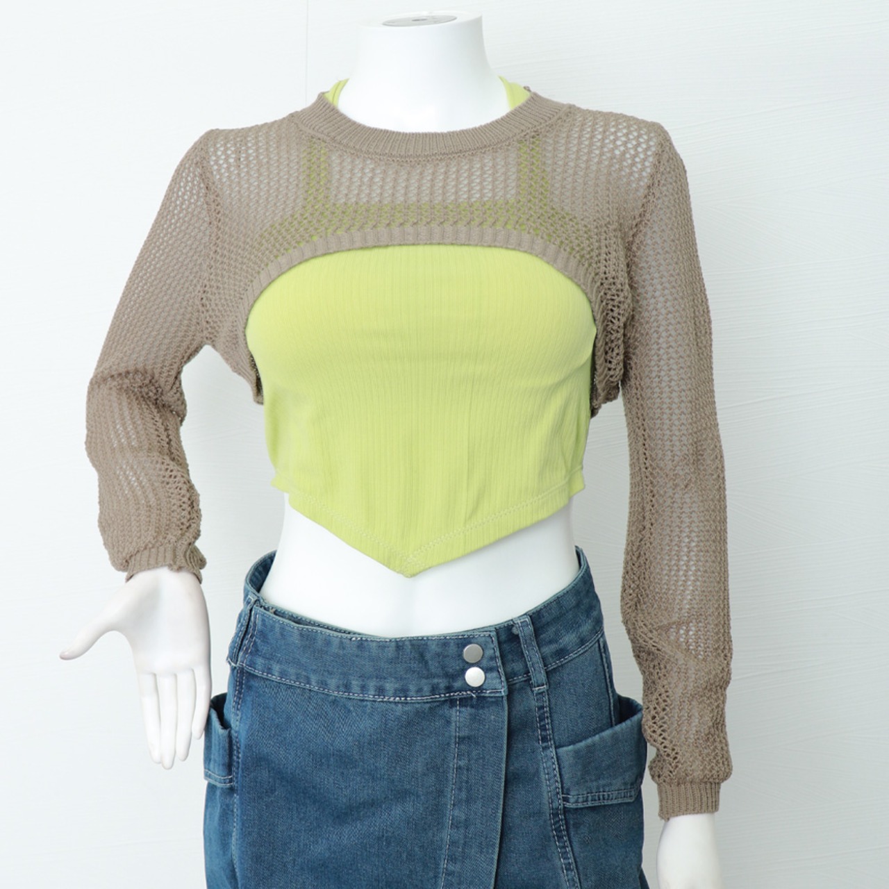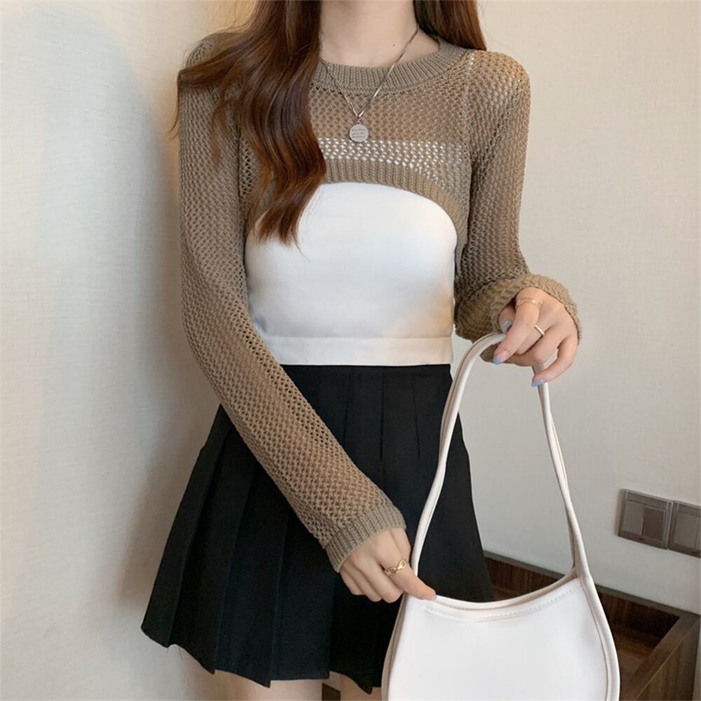 レディーストップス ホローアウト へそ出し セクシー 韓国風 カットソー 春夏秋 重ね着 無地 きれいめ オシャレ