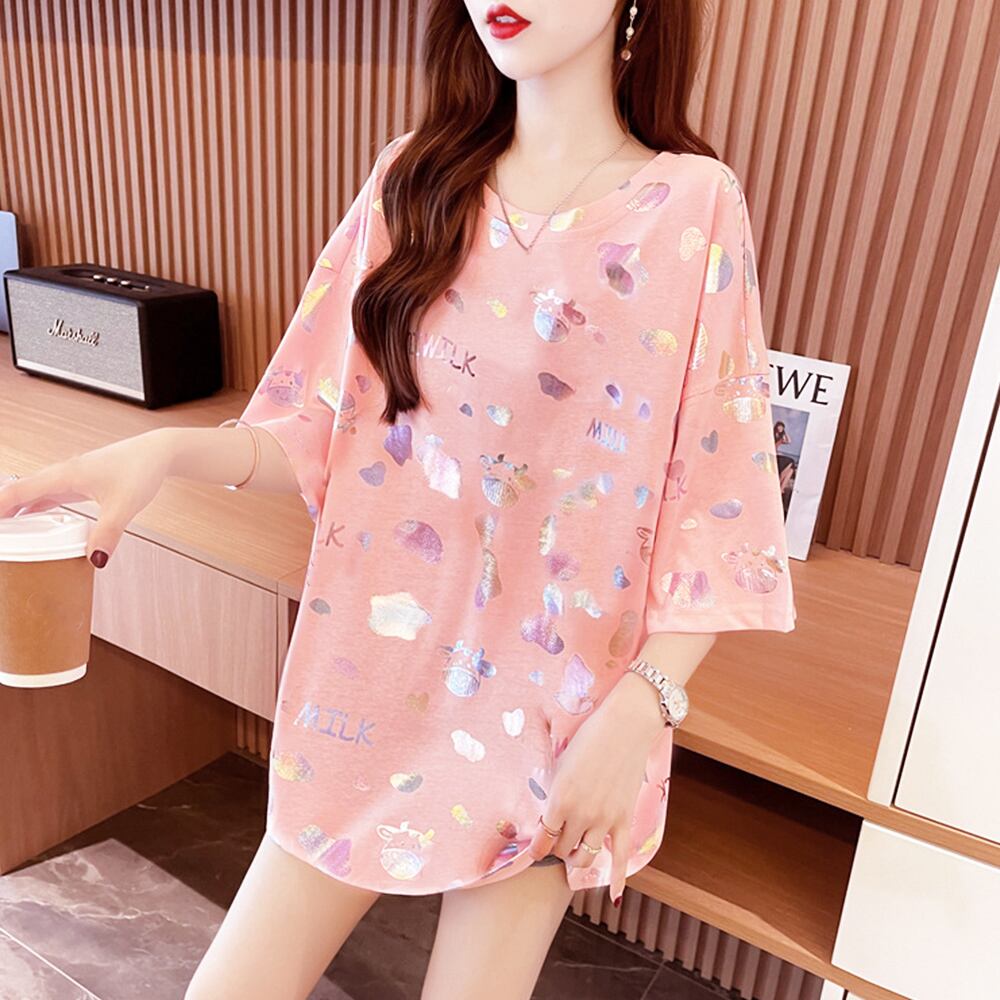 英字ロゴ オーロラホログラムTシャツ オーバーサイズ おしゃれゆったり ビッグtシャツ オルチャン韓国 ロングtシャツ