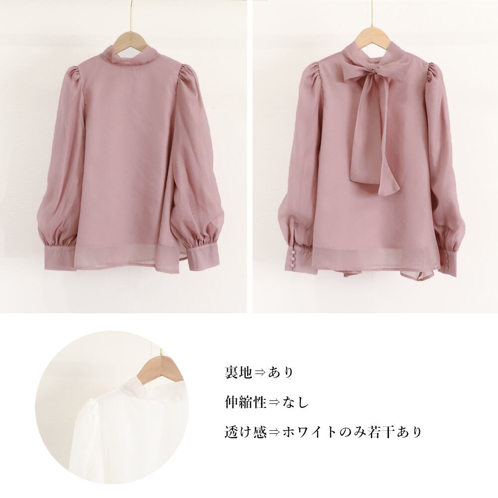 大きめのバックリボンがコーデのアクセントになる、着るだけで旬コーデが決まるオーガンジーブラウス