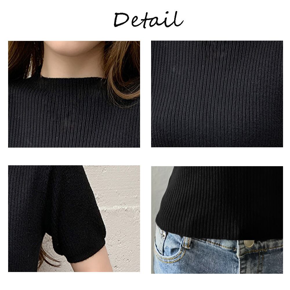 リブ タイトニット トップス レディース 半袖 ニットソー プルオーバー