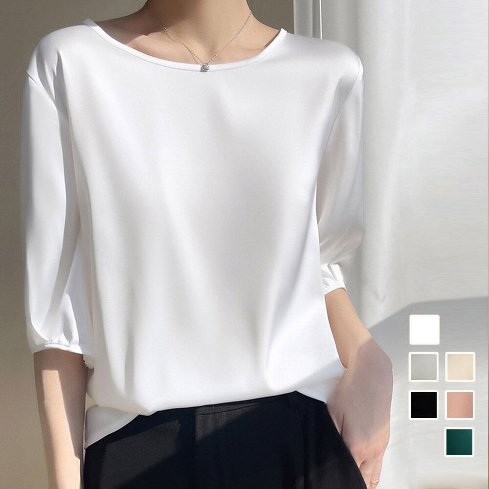 無地 きれいめ 五分袖 薄手シャツ 大人 女性 オフィス カジュアル ゆったり おしゃれ 着やせ 韓国ファッション