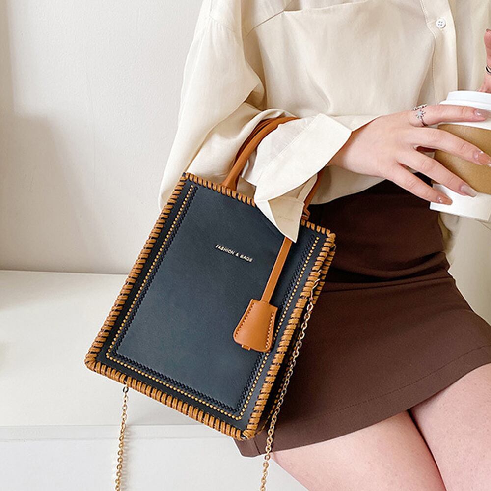 ハンドバッグ 2WAY スクエア 肩掛け チェーンバッグ おしゃれ かばん 配色 大人 上品