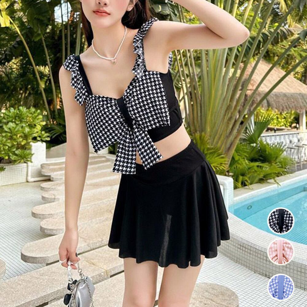 タンキニ 韓国風 ビックリボン 体型カバー リゾート セクシー プール水着女子 セパレート ギャザー ビーチウェア