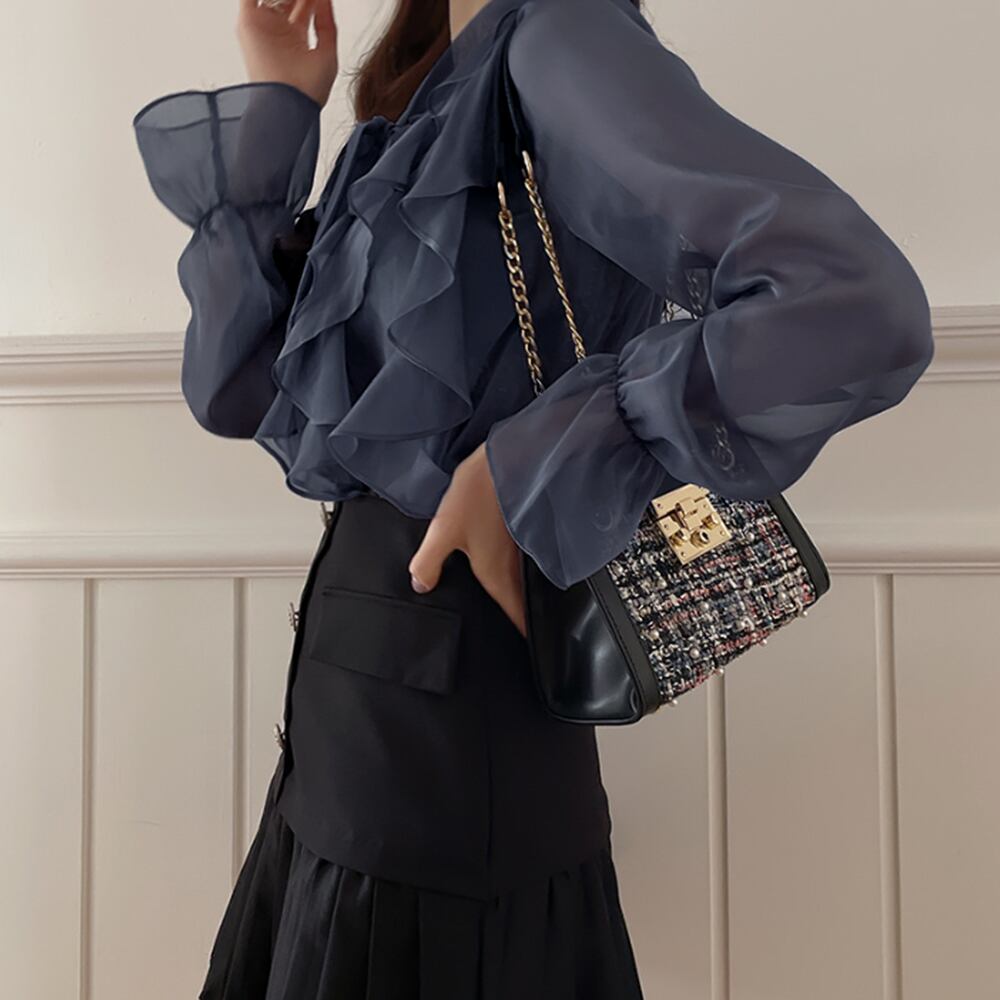 フリルブラウス 長袖 シアートップス上品