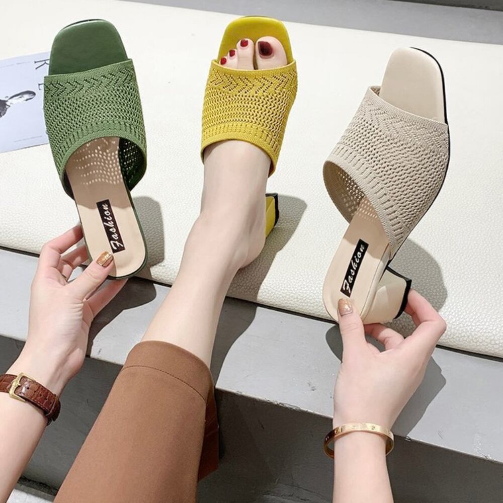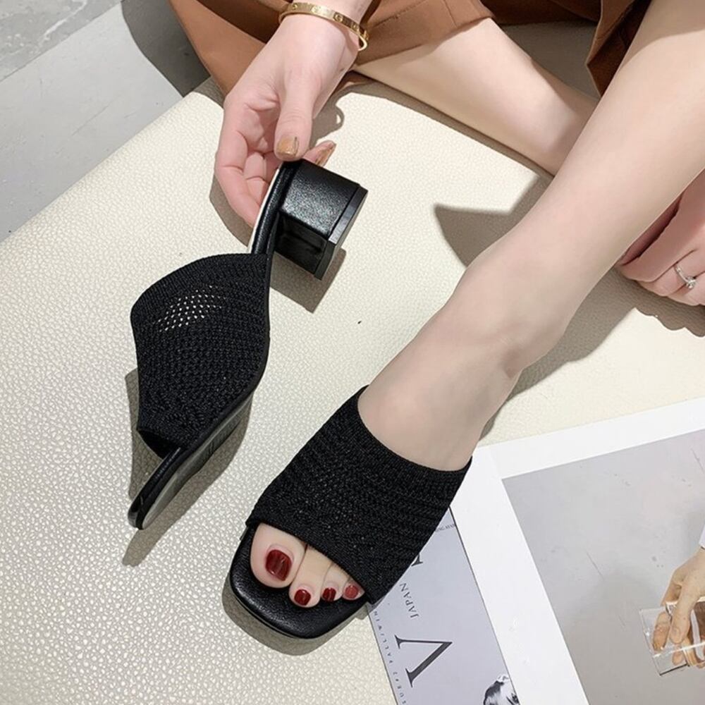 レディース 太ヒール サンダル スクエアトゥ リゾートサンダル 歩きやすい メッシュサンダル 通気性 カジュアル春秋夏靴
