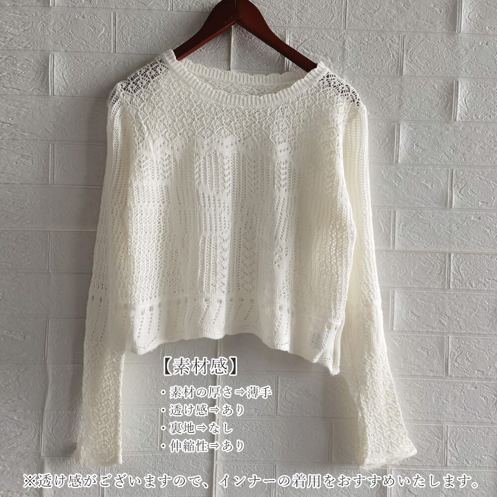 1枚取り入れるだけでおしゃれ着こなしが楽しめる透かし編みニットトップス
