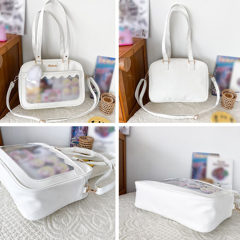 可愛い 2WAY スクールBAG 肩掛け PUレザー 斜め掛けかばん クリア 学生カバン トートバッグ通学バッグA4韓国