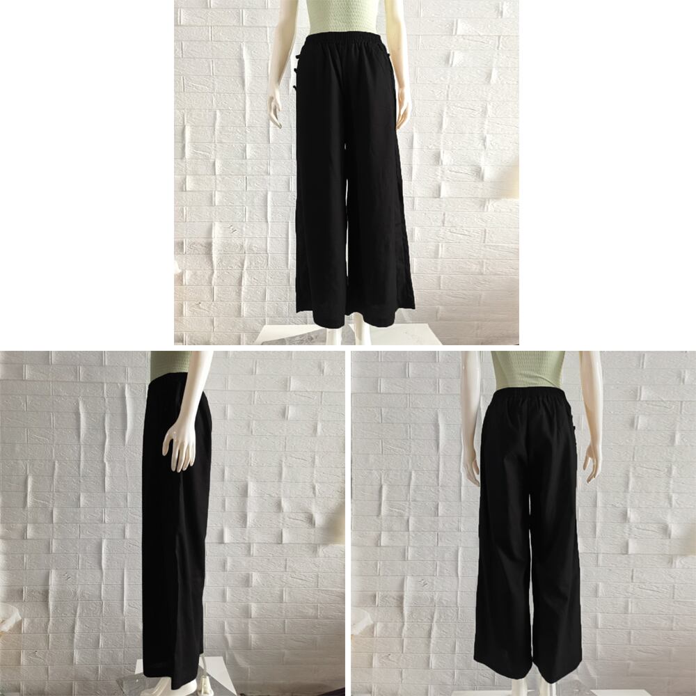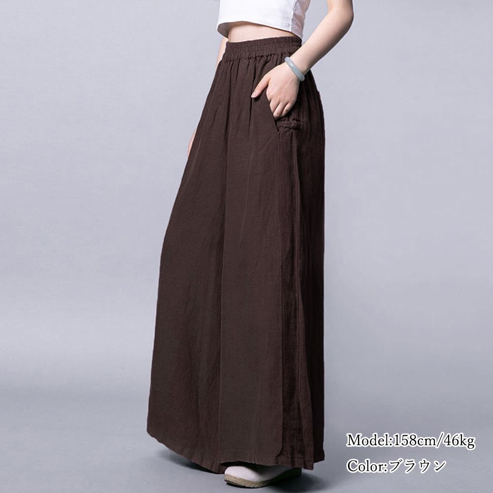 体型カバー パンツ 楽ちん 亜麻パンツ 着やせスカンツ無地