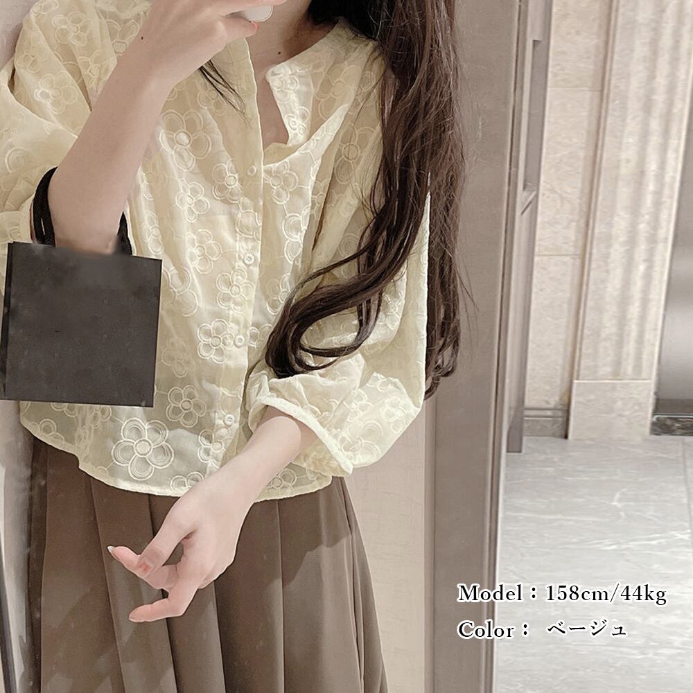 韓国ファッション シースルーブラウス きれいめ 七分袖 フラワーレース トップス シャツカーディガン レディース 春夏服