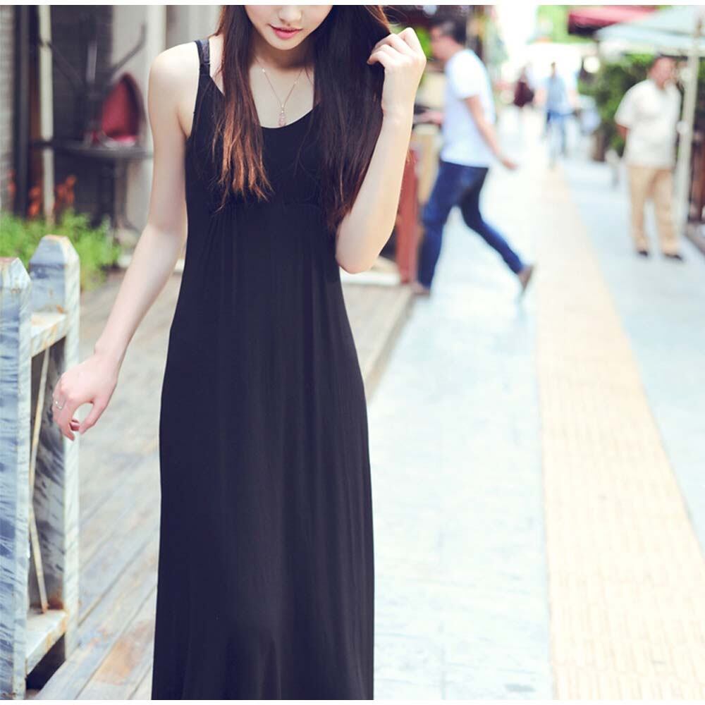 吸水性の良い柔らかいモーダル生地で仕上げた上質な肌触りのマキシ丈キャミワンピース