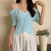 サマーニットオフショルダーニットトップス